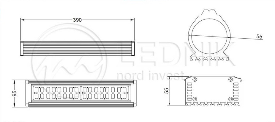 Служит заменой светильников РКУ, ЖКУ на лампах ДРЛ, ДРИ, ДНаТ.