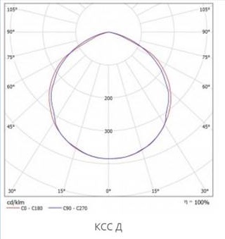 КСС распределения светового потока косинусная Д, угол 120 градусов.
