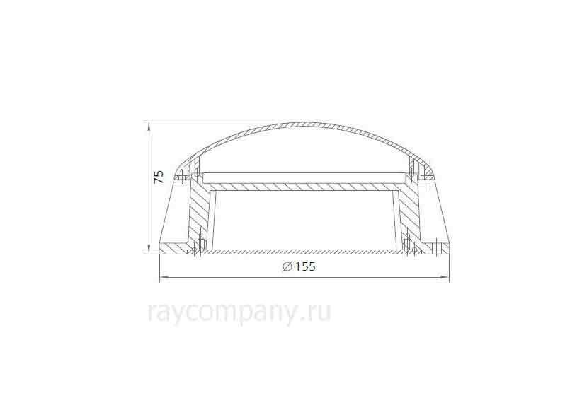 Корпус светодиодного светильника сделан из сплава алюминия. Имеет диаметр - 155мм. Ребра на корпусе хорошо устраняют перегрев светодиодного светильника. Рассеиватель, из ударопрочного поликарбоната, препятствует его уничтожению.