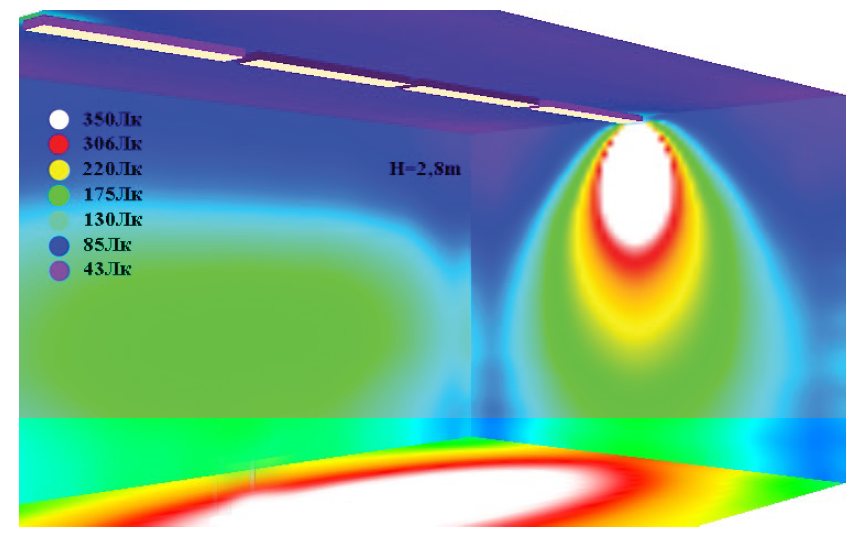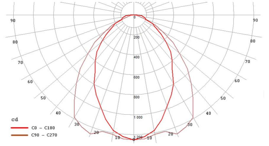 Коэффициент цветопередачи, Ra>80. Цветовая температура 4700-5300 К - нейтральный белый свет. Тип кривой силы света Д, что соответствует световому потоку с углом в 120 градусов.