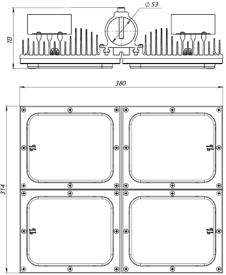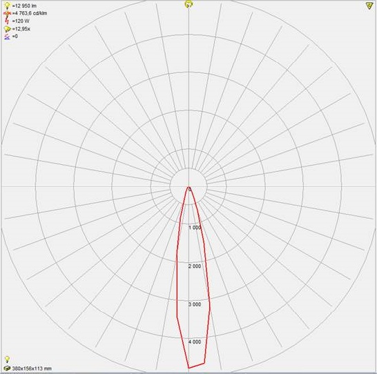 КСС- К (концентрированная) - 30 градусов - 25000Лм, Г (глубокая) -60 градусов - 23500Лм, Д (косинусная) - 110 градусов - 22500Лм, Ш (широкая) - 140х30 градусов - 21500Лм.