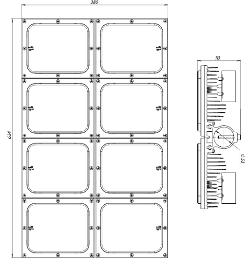 КСС- К (концентрированная) - 30 градусов - 45000Лм, Г (глубокая) -60 градусов - 45000Лм, Д (косинусная) - 110 градусов - 46000Лм, Ш (широкая) - 140х30 градусов - 42300Лм.