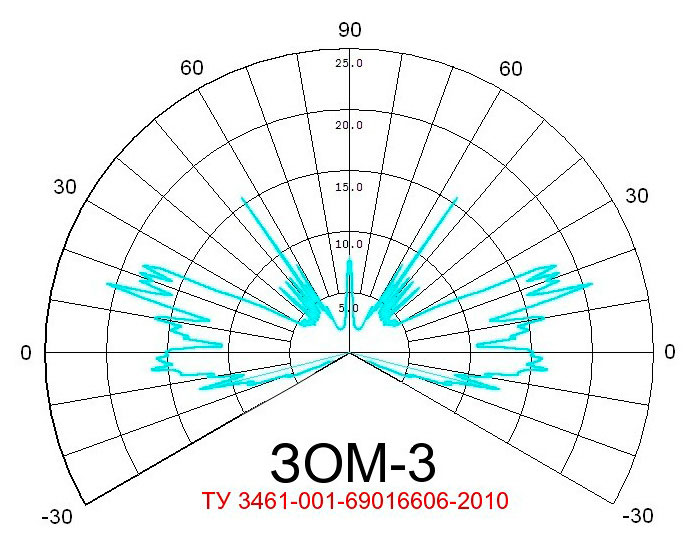 Угол рассеивания: нормированное значение 16°, фактическое 32°;
