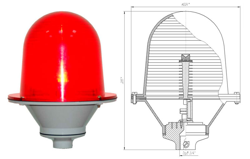 Огонь заградительный ЗОМ-3>10cd, тип «А», 30-265V AC/DC, IP54, служит для светового обозначения строительных объектов, высотных зданий и сооружений, дымоходных труб, ретрансляционных матч, кранов, опор мостов, в авиационном секторе и т д.
