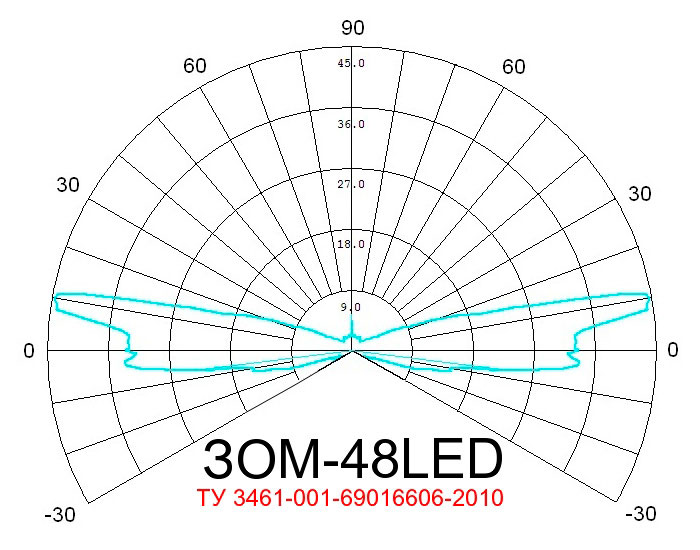 Сила света в направлении +10°: 45 кд;