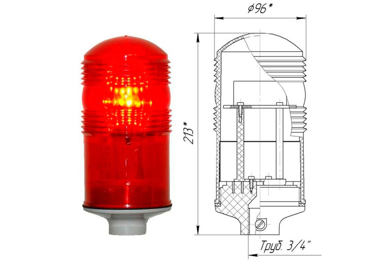 Светодиодный заградительный огонь ЗОМ-48LED >32cd, тип «Б», 30-265V AC/DC, IP54, используется для светового обозначения строительных объектов, высотных зданий и сооружений, дымоходных труб, ретрансляционных матч, кранов, опор мостов, в авиационном секторе и т д.